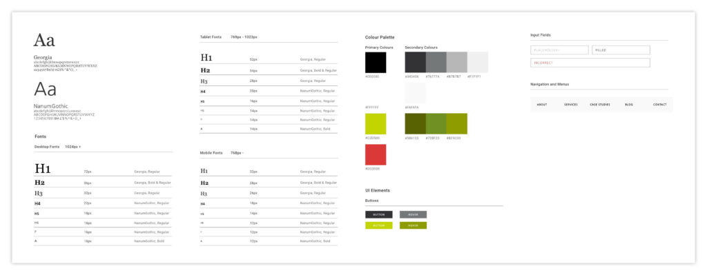 This acts as a one-stop shop reference for every style included in the design, meaning that the developer doesn’t have to trawl through the entire design looking for differences in fonts or colours. This is what I tend to include in a style sheet: